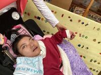 Ⅲ課程では、作業製品の販売の準備をしています。みんなでお花紙をつまんで丸めて指先の学習をしながら、看板の装飾をしています。